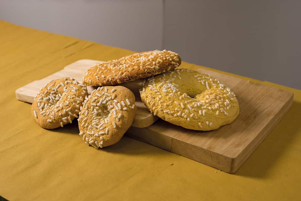 The tradition linking it to weddings is still alive today: those who taste it wish the bride and groom a long and pleasant future, just like the taste of this doughnut. Consumption is not, however, relegated exclusively to the rite of marriage, the cake is in fact produced and marketed daily by the numerous bakeries located in the historic centre. Among the people of Rocca, it is in fact common to enjoy them at breakfast, dipping them in milk.