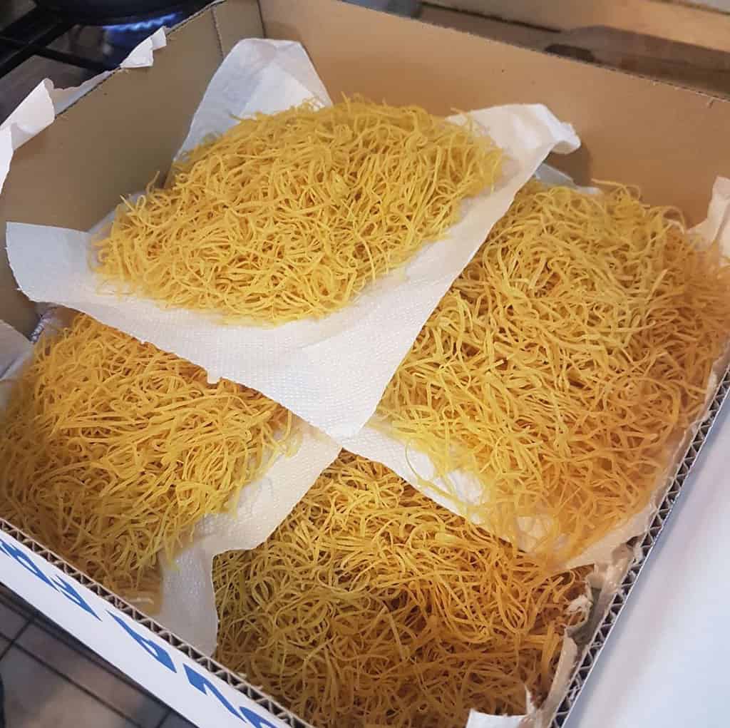 The original recipe for Fieno di Canepina, locally called 'Maccheroni di Canepina', has been handed down from generation to generation since the Middle Ages in this small historical village in the heart of Tuscia viterbese. The decision to call it 'maccaroni' could be linked to the Greek 'makaira', a particular type of knife, wide and slightly curved, with which pasta was cut in the past, giving it that characteristic threadlike appearance. Felice Cunsolo, a wandering journalist, in his 1979 book 'I maccaroni d'Italia' refers for the first time to maccaroni, calling them 'fieno' to emphasise how this pasta format was characterised by being very thin, resembling a strand of wheat in shape. Fieno di Canepina requires a complex preparation and a technique that has remained practically unchanged over the years, ensuring that the ancient characteristics of a product handed down through generations are still preserved. The very thin dough, similar to angel hair, is made with egg and generally produced with 0 or 00 flour. The cut made with a knife point ensures that the pasta has an extremely fine shape and is cooked quickly. Another prerogative of the preparation of this dish is the habit of taking it out of the pot as soon as it is cooked and placing it on a clean kitchen towel to remove the water, prevent the pasta from sticking and to allow it to better collect the sauce. Traditionally it is seasoned with minced meat sauce or chicken giblets, but it is also excellent in the white variant with porcini mushrooms from the Cimini Mountains.