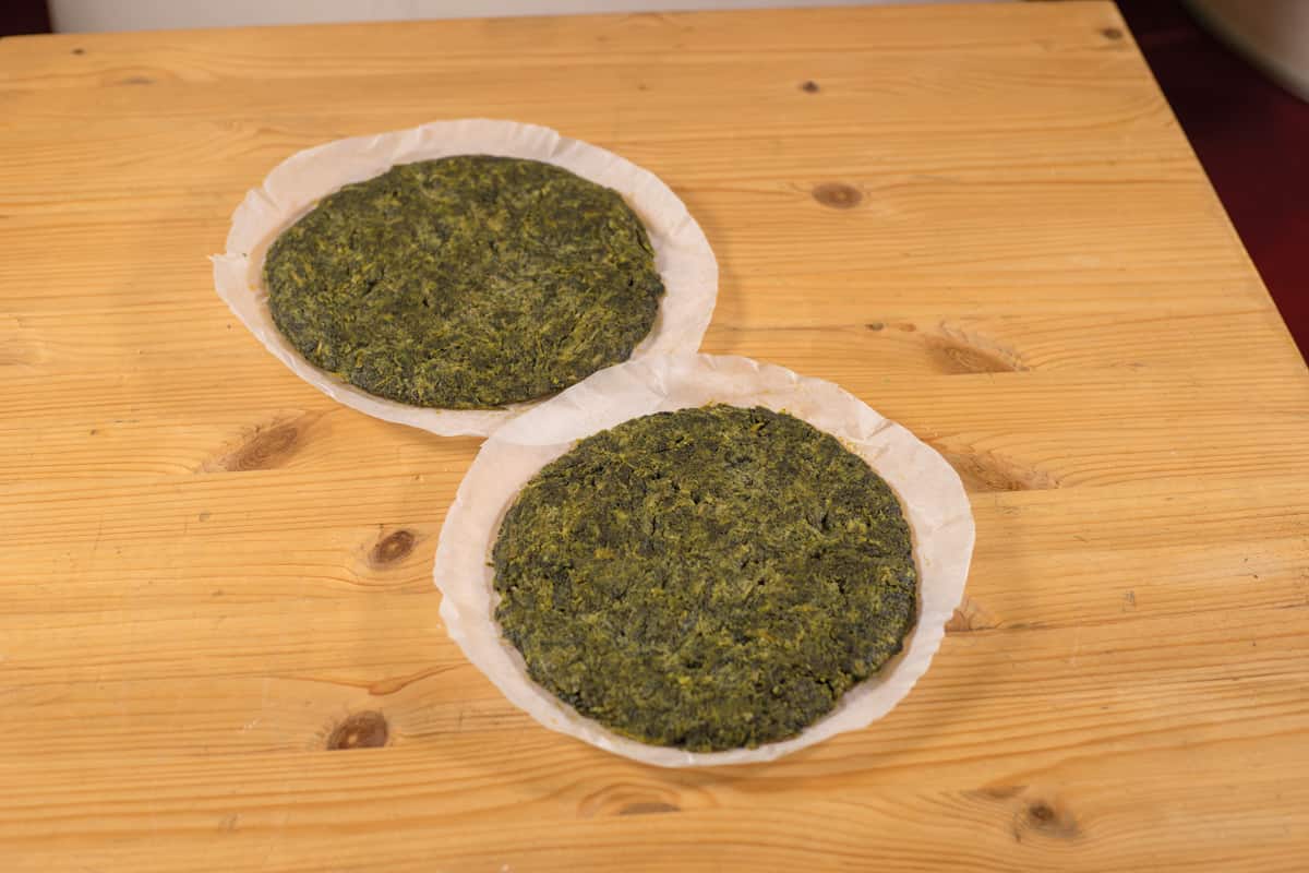 In this small municipality of southern Lazio, located in a panoramic position within the Monti Aurunci Natural Park, this chicory omelette of ancient tradition is prepared, with its round shape, variable weight and local ingredients. The recipe calls for the chicory to be first cooked, then squeezed out, finely chopped and placed in a large frying pan, known locally as a 'sartagna', over a sauté of oil with mint. To obtain the round and compact shape, in addition to the help of a fork, flour must be sprinkled on both sides to thicken the omelette.