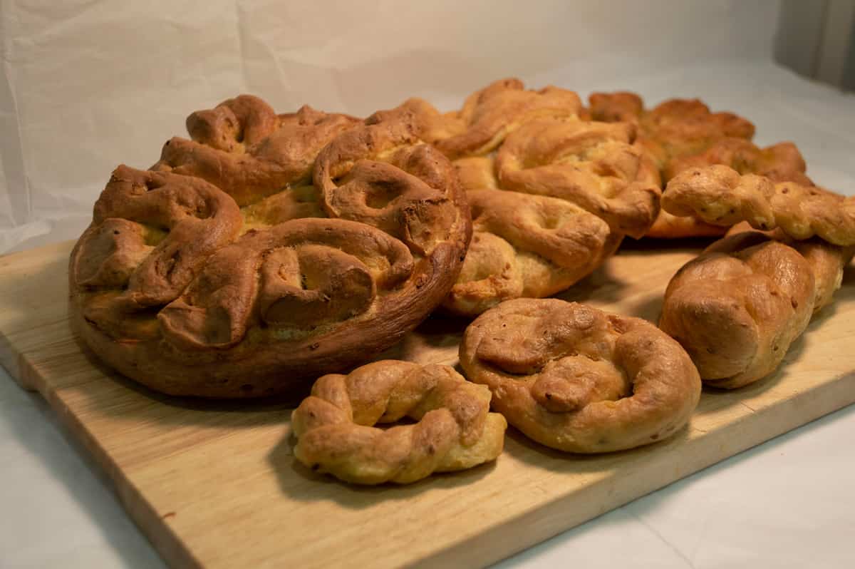 This is the story of Mrs. Donata from Mentana, who remembers her gift of love to her husband with a nostalgic smile: 'I, too, prepared, a long time ago, the cancellu donut for my groom, trying to put infinite care and attention into every step. But at the moment of composing his name, I realised that the rolls of dough I had prepared were too many. My fiancé's name was short, what could we do? It wasn't his fault.... So after composing my groom's name I was left with the doubt of what to do with the leftover dough. I had planned and carried out that preparation with so much respect for tradition, almost as if I had to perform a sacred rite, that I decided I could not use it for something else, like ordinary biscuits, let alone throw it away. So I decided to eat it, raw! I wouldn't do it again,' she says resolutely. And then with a smile she hastens to add: 'tasting raw pasta, of course! Even today in Mentana, at weddings, it is customary to give and taste the doughnut, which thus continues to evoke the symbol of a bond and participation in a festive moment.