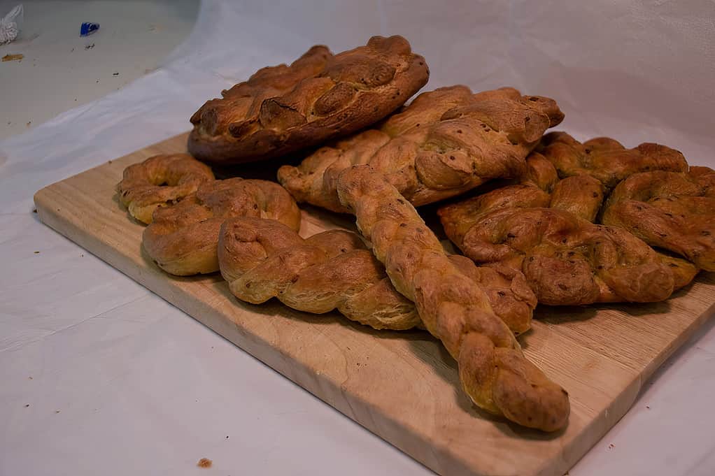 The Ciammella a Cancellu is a poor sweet from Mentana that can probably be linked to the ancient ritual festive breads of the area. The earliest historical evidence dates back to the mid-1700s when a group of peasants decided to found the Confraternity of Sant'Antonio Abate di Mentana and to institute a feast dedicated to the patron saint of animals. In the ancient statutes of the Confraternity, one of the obligations of the Confraternity members attending the feast is to bring 'as per tradition, two donuts per gate and a large bottle of wine'.