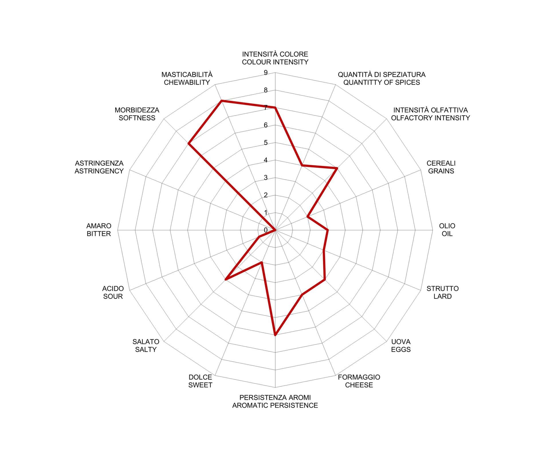 Il Frittellone, dalla caratteristica forma arrotolata a sigaro, ha un colore giallo dorato. Al naso si caratterizza per le pronunciate note di uova e formaggio abbinate a sentori di lardo. Al gusto si presenta mediamente salato, con una gradevole nota dolce. Elevata morbidezza e media persistenza aromatica.