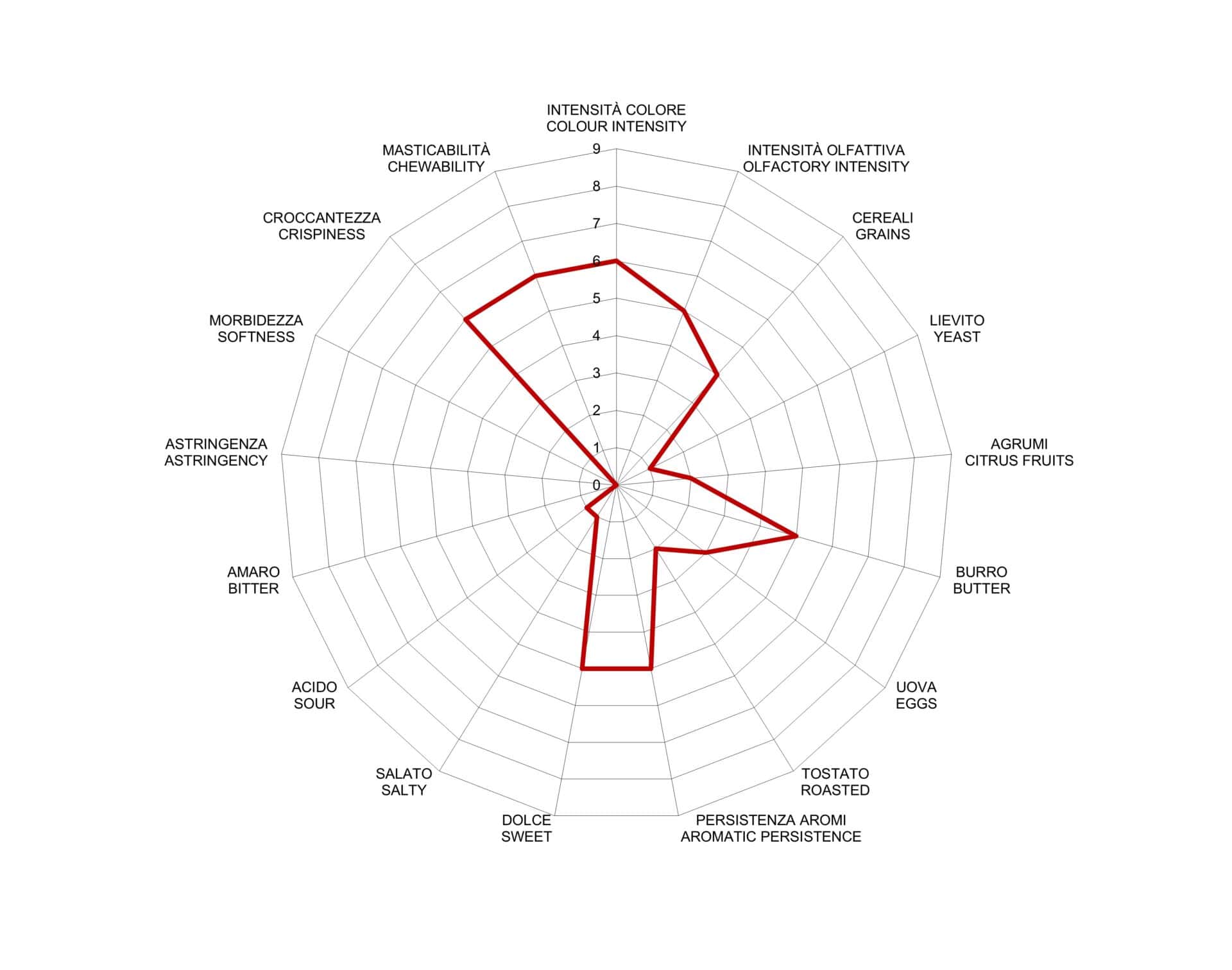 Le Serpette, contraddistinte dalla caratteristica forma a “S”, hanno un colore beige intenso. La media intensità olfattiva si caratterizza per le pronunciate note di uovo e di burro, abbinate a sentori di limone. Al gusto si presenta dolce, con una leggera nota salata ed acida. Buona croccantezza e media persistenza aromatica.